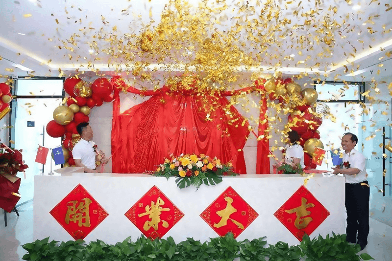 团体公司贾总、常务副总秦总为为公司进行了揭牌典礼。庆典典礼进入飞腾,跟着掌管人和大师一路喊出“5-4-3-2-1,鸣炮、吹打、揭牌!”喜庆的炮声齐鸣,高兴的乐声齐奏,揭牌典礼正式起头。